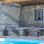 The George Villas With Private Pool, Close To Mykonos Town - Chora features a terrace with views of the mountain as well as an outdoor swimming pool. Featuring sea views, the villa invites guests to visit Boni's Windmill, located a 25-minute walk away.